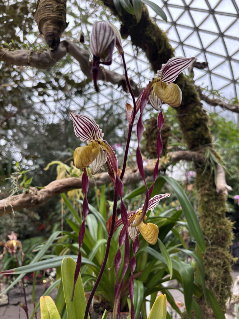 The Vancouver Orchid Society Installation was made in partnership with the Bloedel Conservatory in November 2025. This installation provides Vancouver residents the opportunity to learn about the incredible diversity and beauty of orchids. Orchids comprise 10% of all seed plants, and they are among the largest plant genera in the world. Over 100,000 hybrids having been produced to be enjoyed from over 8,00 genera. From lush tropical rain forests to the arctic tundra, Orchids have adapted to survive almost every corner of our world. Many orchid species are threatened by human-related activity like climate change, deforestation, and poaching, and we believe that increased orchid education, awareness, and appreciation will help protect these plants for generations.